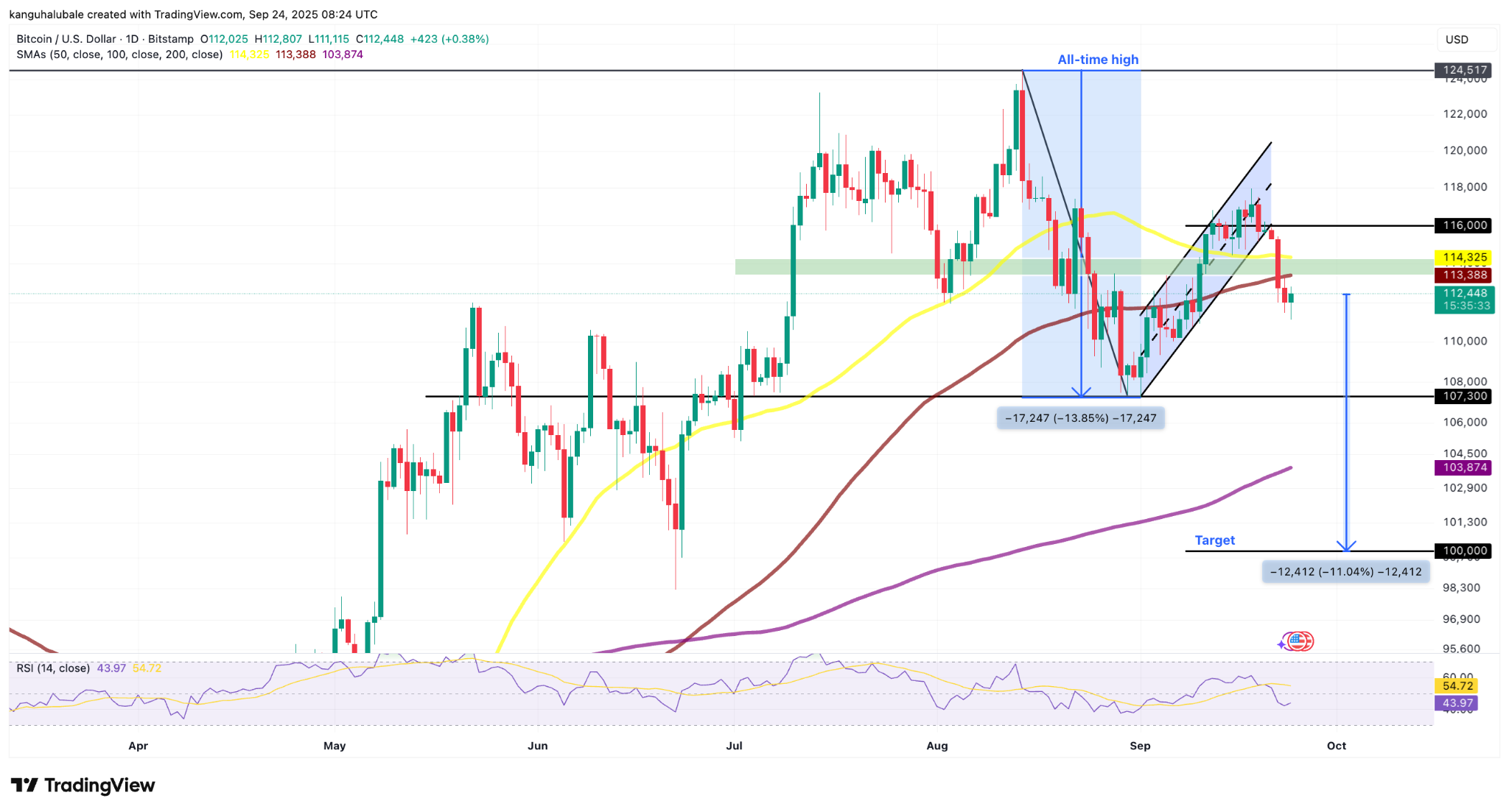 Bitcoin Bulls ayrıca, basit 50 günlük mobil ortalama (SMA) ve 114.300 $ ‘dan 114.300 $’ dan sağlanan desteği kaybetti ve bu da satış tarafındaki baskının yoğunluğunun altını çizdi.